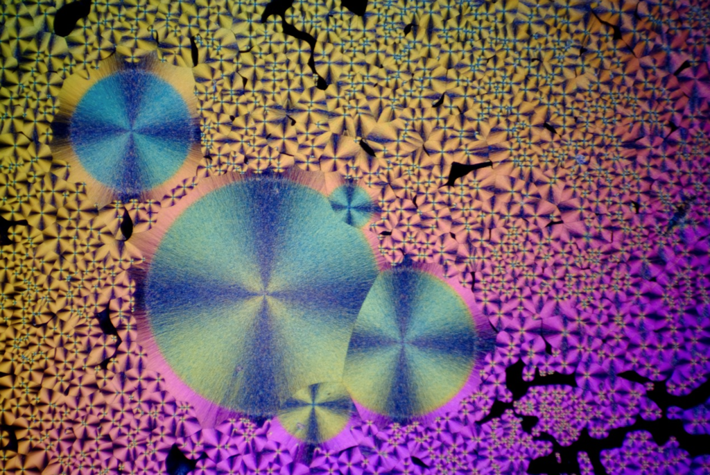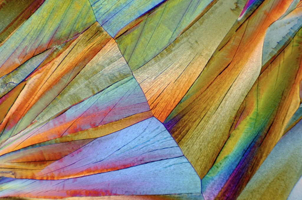 Polarized light photomicrography (above) is a unique blend of science and art in photography that involves crystallizing various substances such as Vitamin C, niacinamide, sulfur and artificial sweeteners on a microscope slide and studying/photographing the unique crystal formations that develop with a camera attached to the microscope.